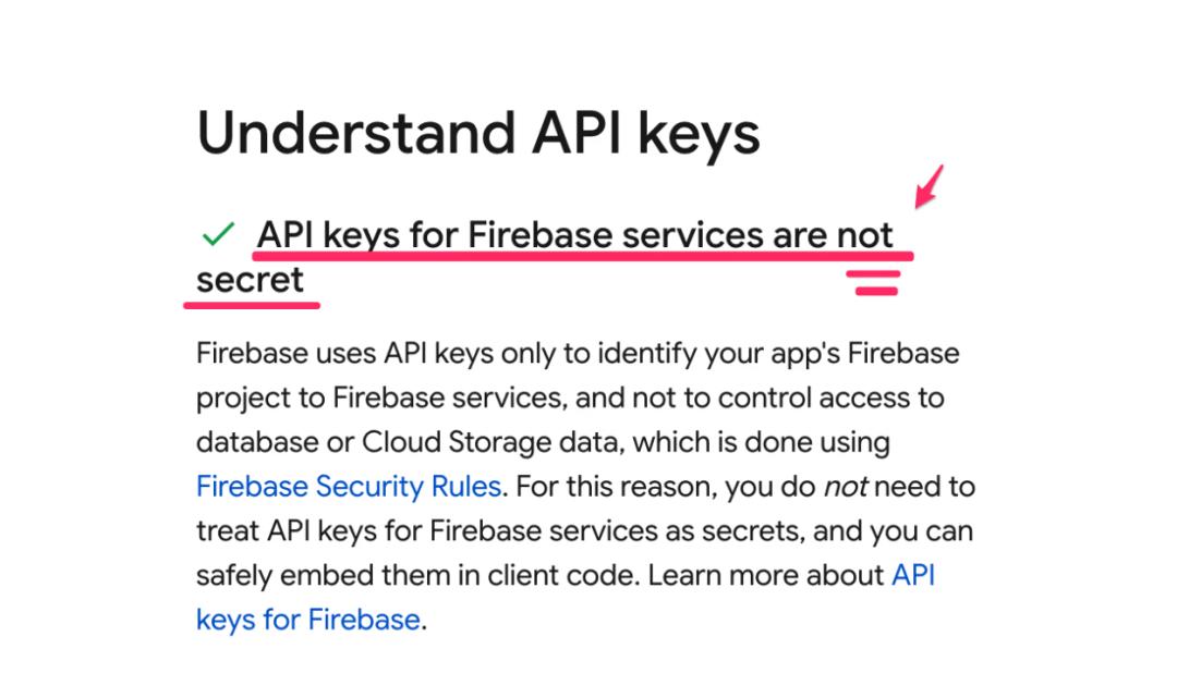 多年来,谷歌一直明确告知开发者,API 密钥可以安全地嵌入客户端代码中。Firebase 自身的安全检查清单也指出,API 密钥并非秘密信息。