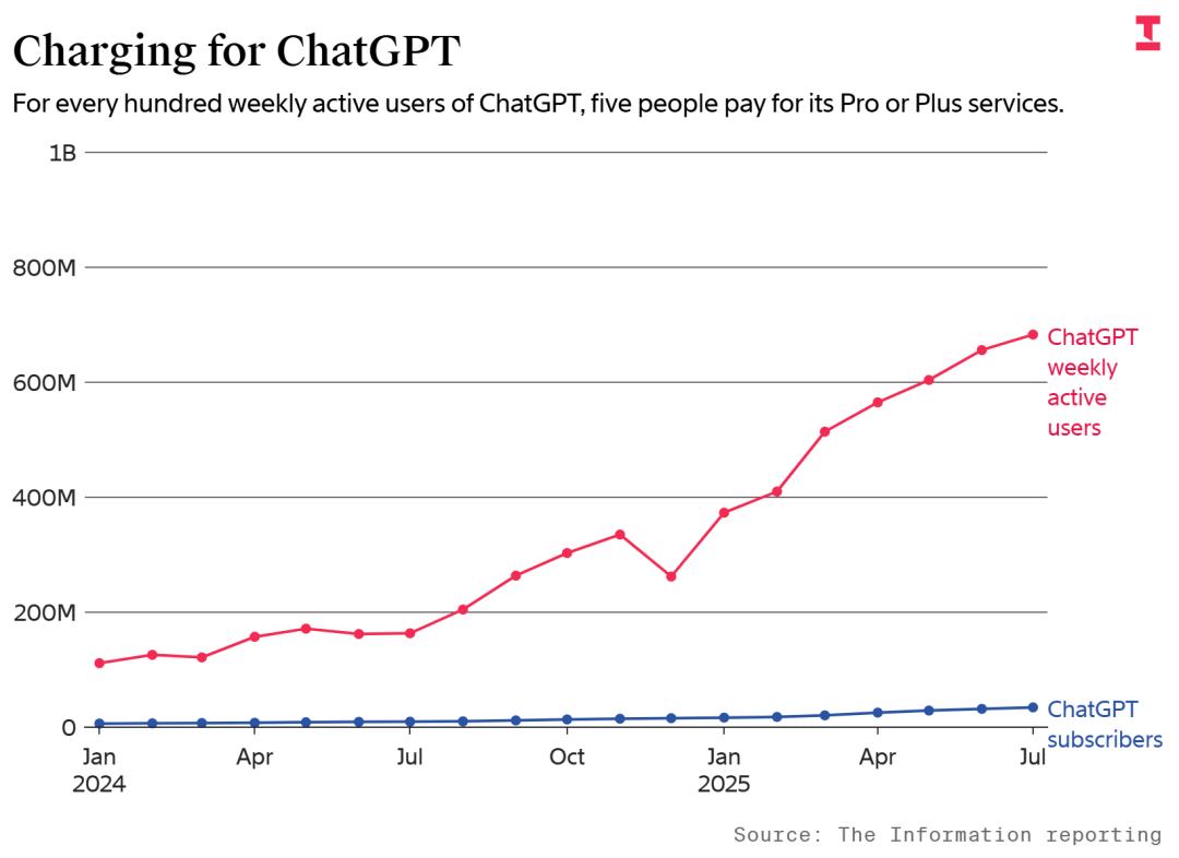 用户规模在猛涨,但付费人数始终只占极小比例,这也推动了OpenAI寻找新的商业模式