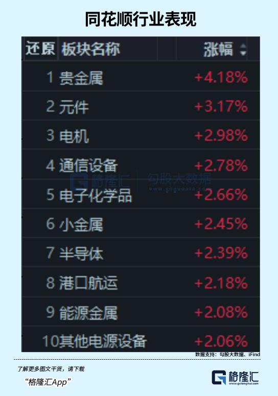 板块方面,贵金属、元件、通信设备、人形机器人题材活跃,医药商业、影视院线板块调整。