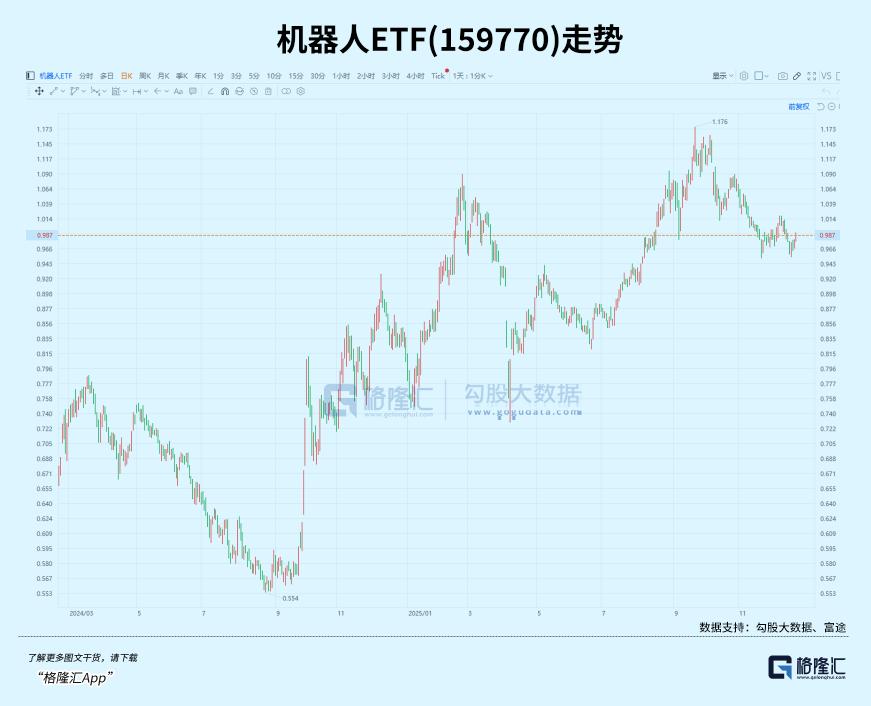 周一回来, A 股人形机器人板块继续反弹,港股中资概念股也出现冲高趋势, 机器人ETF(159770)跟踪的标的指数上涨1.47%。 数据显示,虽然到了年底,但资金对这个赛道依然十分关注。