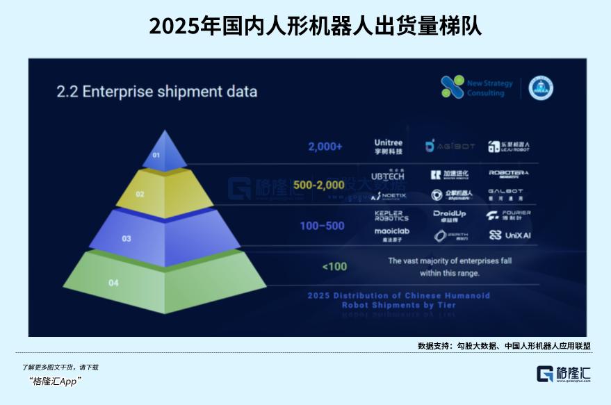 而国内人形机器人团队的量产进度,其实已经形成了压倒性的优势。据中国人形机器人应用联盟(HRAA)估计,到2025年,中国的人形机器人出货量预计将达到2万台,同比增长超过614%,贡献了全球年度出货量的75%至85%。