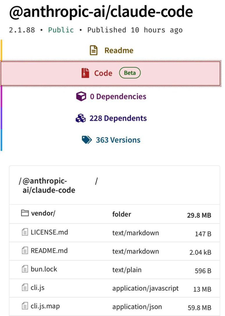 技术原因其实很低级。Anthropic在发布Claude Code v2.1.88的npm包时,没有从发行包中剔除一个59.8MB的source map文件cli.js.map。