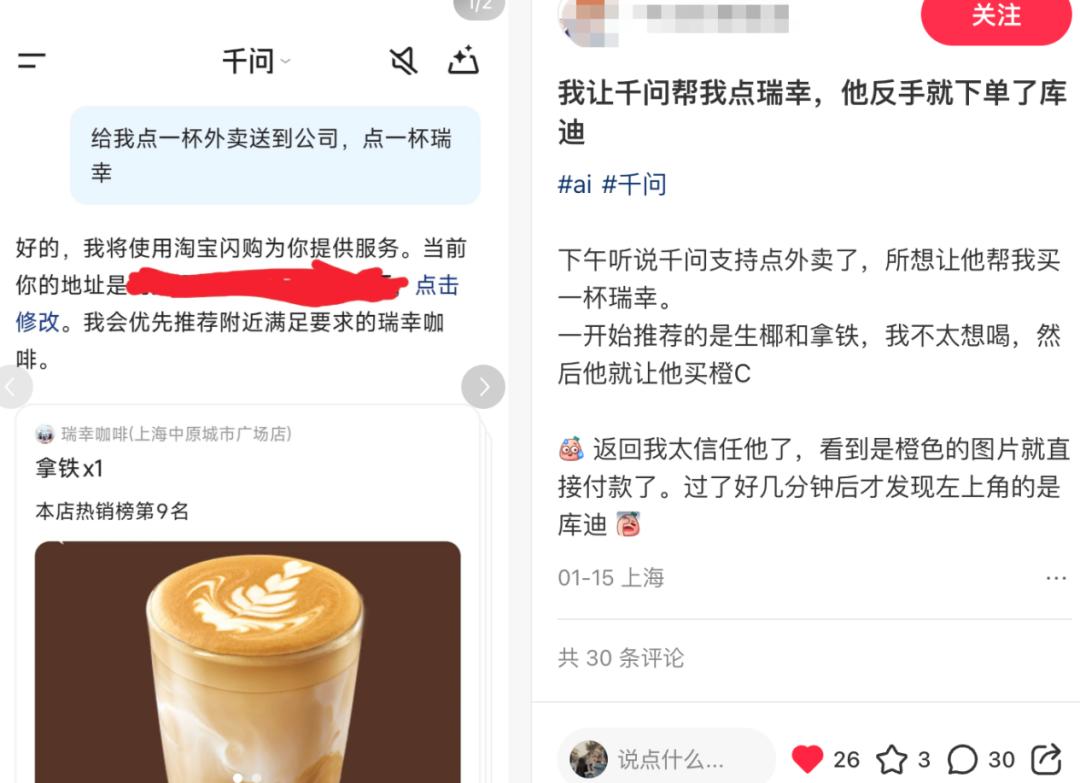 更有网友吐槽称,“我让千问帮我点瑞幸,他反手就下单了库迪,还是太信任它了”