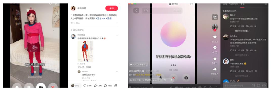 豆包的 UGC 策略已经形成了“用户反馈-素人推动-爆款话题” 的闭环,通过收集用户真实反馈,让素人内容自然发酵,极大降低了推广成本。而借助抖音 “算法推荐 + 内容共创” 的生态优势,为豆包的“梗营销”提供了底层支撑。