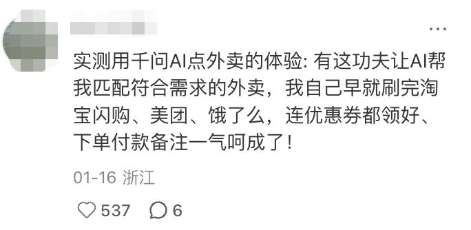 但火爆背后也暴露出明显的短板:活动峰值下用户体验尚不稳定、操作链路繁琐,部分用户认为AI辅助下单效率不如手动。