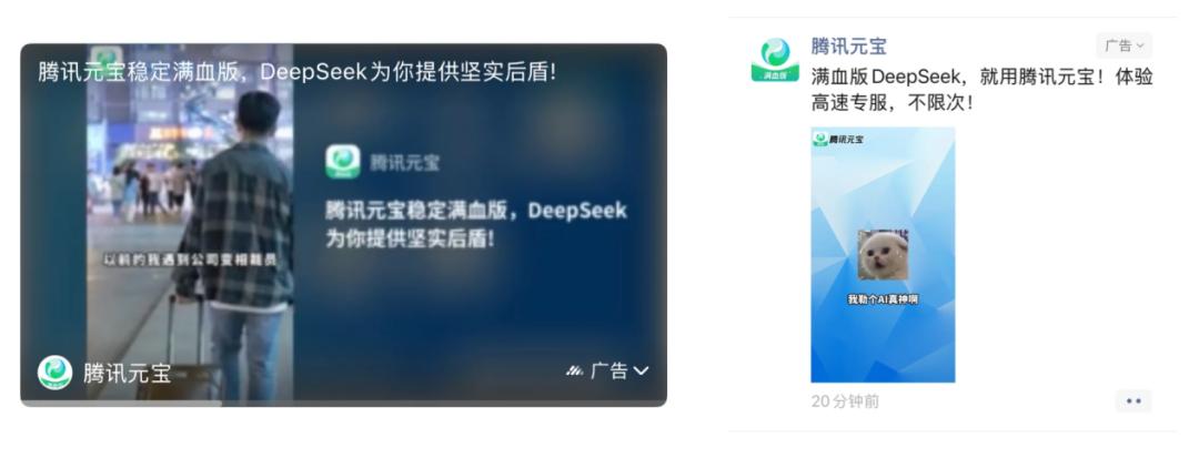 同时,元宝还下沉至县域与农村市场,通过刷墙、菜市场横幅、线下科普讲座等方式触达下沉市场用户,被网友调侃为首个“下乡”的AI产品。