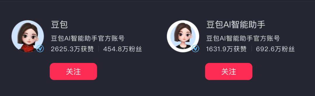 豆包在抖音构建了扎实的 UGC 阵地。当前豆包在抖音有两个账号“豆包”“豆包AI智能助手”相加粉丝量超过了一千万。在AI领域的账号中,鲜少能见到豆包这一体量,这意味着粉丝基础十分扎实。