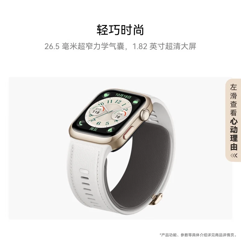 这就是华为 WATCH D2 能够引领血压表行业的原因,让我对腕上科技有了全新的认知。核心的动态血压监测功能无疑是它最主要的亮点,通过超窄力学气囊和智能多姿态识别算法,无论白天办公还是夜间睡眠,它都能精准捕捉血压变化,避免了传统血压计的笨重和不便。此外在产品整体设计上,1.82 寸大屏和高级简约的外观,戴着它出门也不觉得像医疗器械,而是时尚配件;再加上全天候的健康检测让我们能够轻松掌握身体状态,电池续航也足够支撑大约 1 周的日常使用,没有频繁充电的烦恼。
