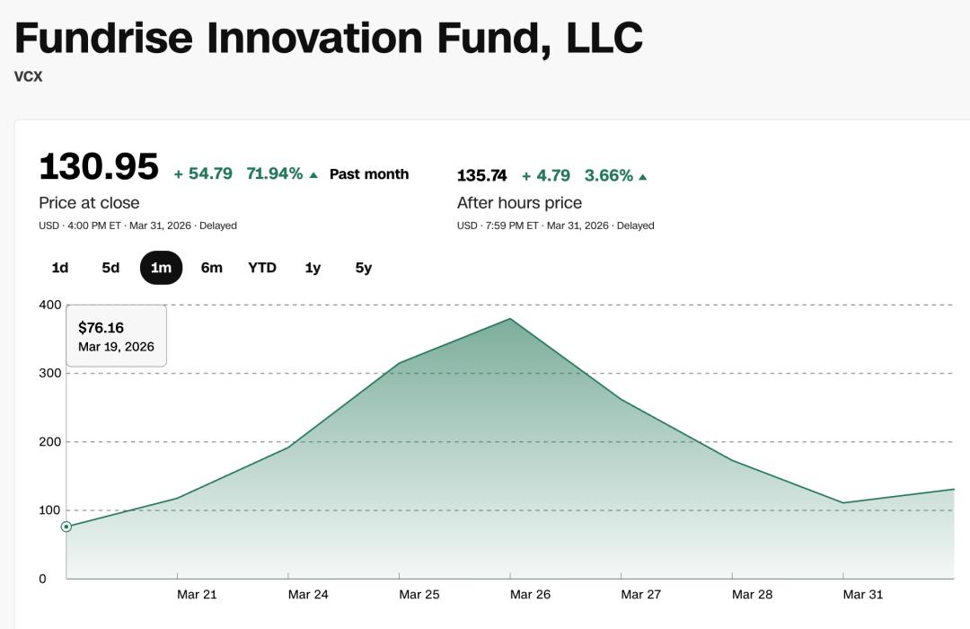 上市首日,VCX以约42美元开盘,上市后数日内从数十美元一度冲到 575 美元附近,溢价超过31倍。