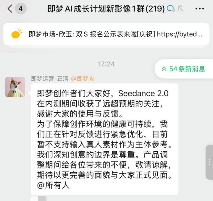 面对强烈抵制浪潮,字节在除夕日,在美国媒体上做出了合规承诺,表示公司尊重知识产权,正在采取措施加强现有的保护机制。作为初步应对措施,字节官方此前已暂停了Seedance 2.0用户上传真人图片的功能。