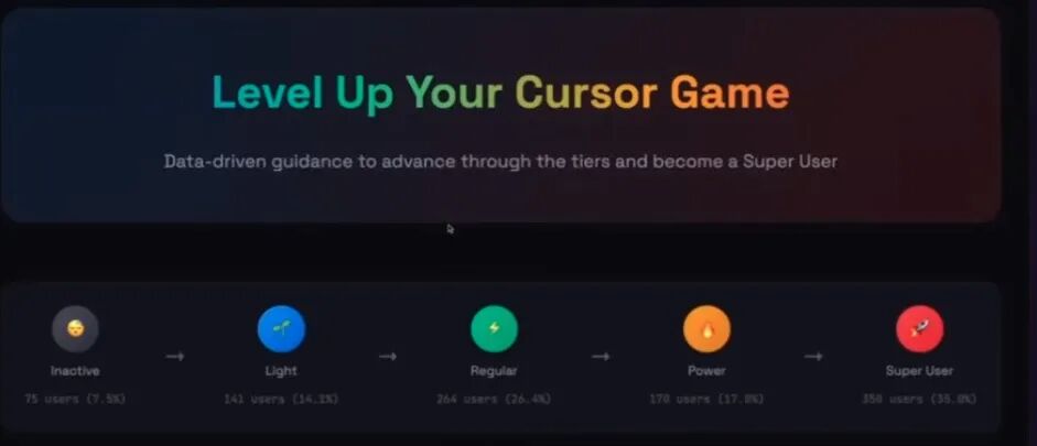 我把 Cursor 管理后台导出的 CSV 丢进去,让它帮我做两件事:一是按使用方式把团队自然分群,二是把结果做成我能复用的输出(比如 CSV 汇总、简单的 dashboard,顺便生成一份 Python 脚本)。它会按大致的使用强度把人分成 light、moderate、active、power、super user,也会看一些更细的维度:产出量、使用复杂度、是否常用 agent mode、模型偏好、采纳率,以及到底用了哪些功能。