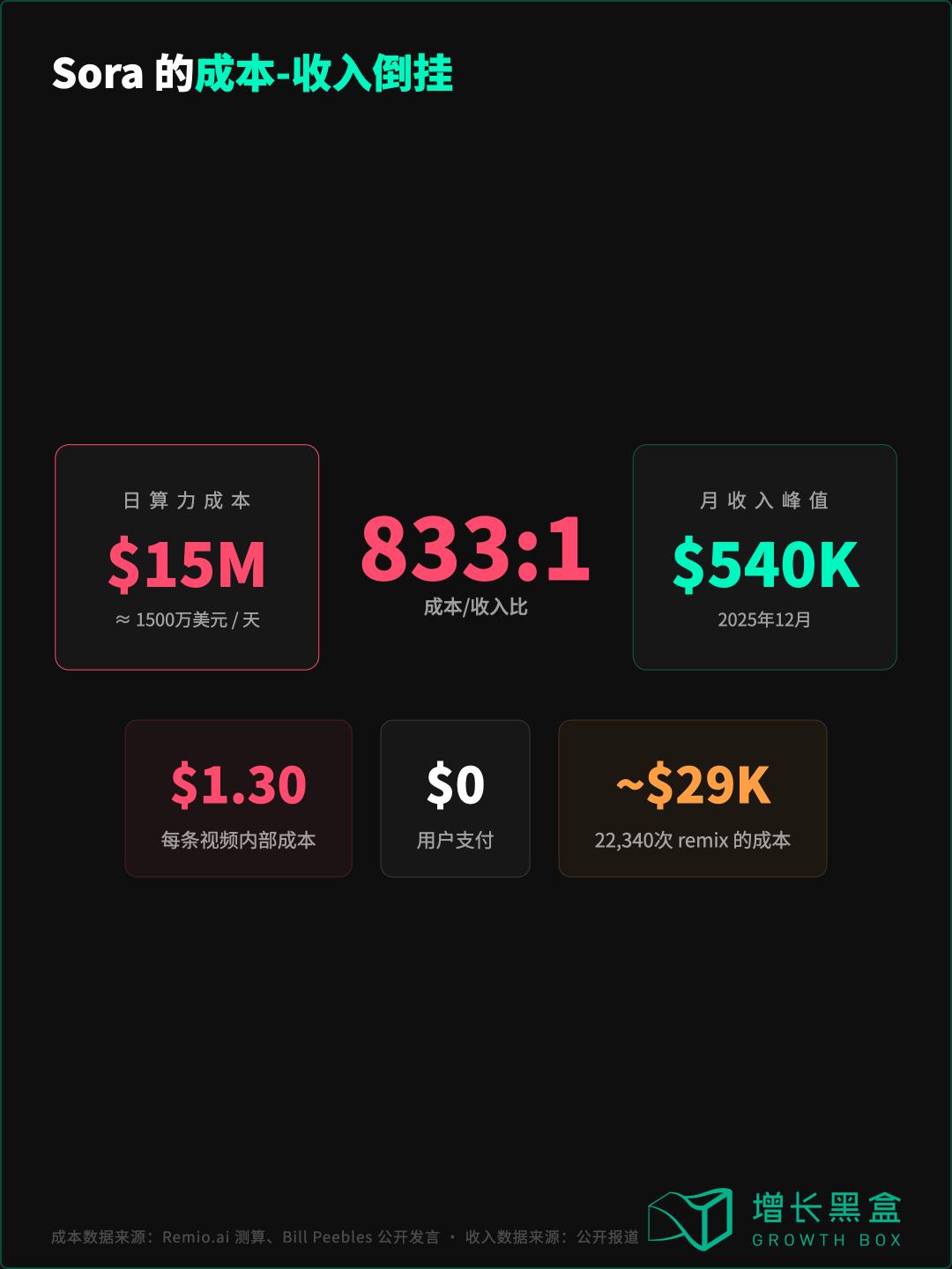 越成功,越亏钱。AI 把创作门槛降到了零,但创作的成本并没有消失—它只是从用户侧转移到了平台侧。 这个成本转移,才是 Sora 作为消费级平台无法运转的根本原因。