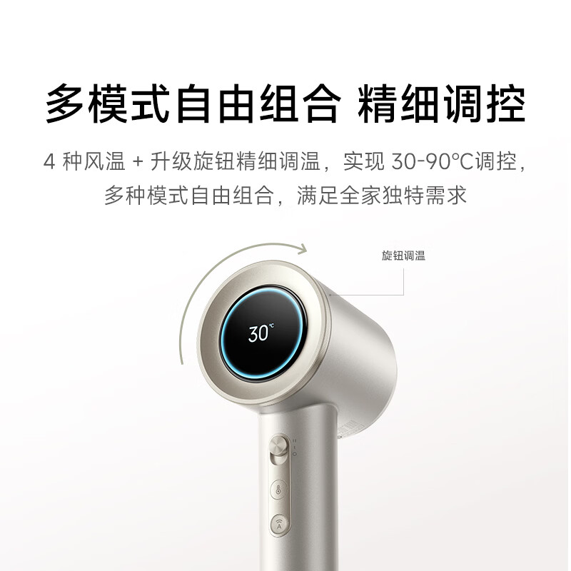 该机支持双恒温护头皮模式,搭载 TOF 传感器,能够实时监测头皮与出风口距离,自动调控风温在初始区间,同时其内置水离子技术,能够改善头皮微生态平衡。