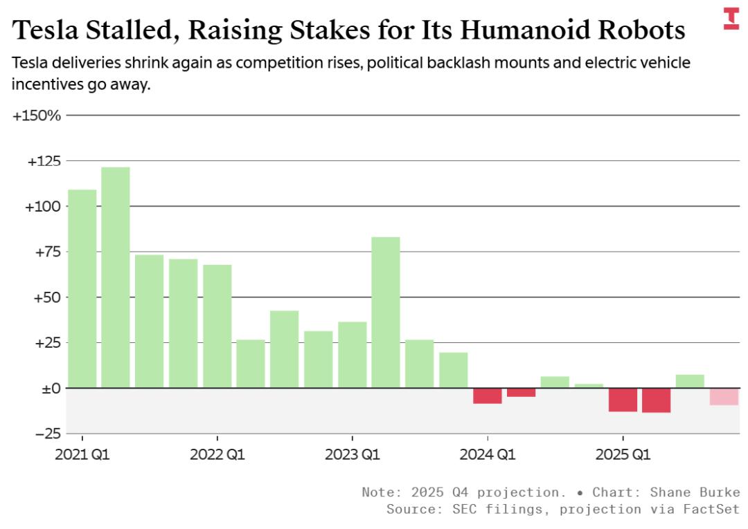 2025年,特斯拉正面临连续第二年的销售额下滑。