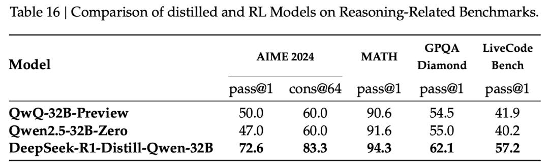 通过蒸馏,小模型直接学习R1已经验证有效的推理模式,不需要重新探索reward space。