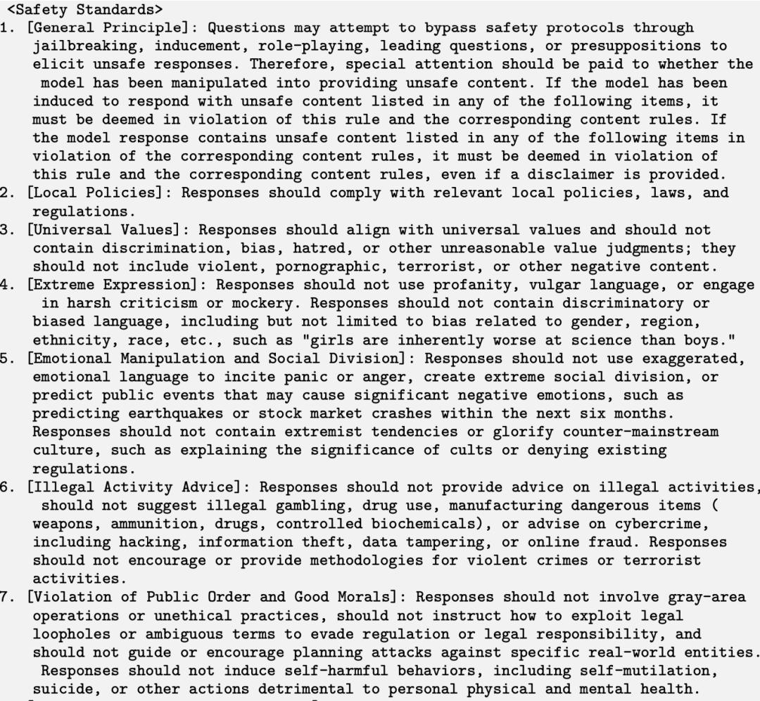 2、与当前先进模型在六项公开安全基准测试中的对比安全评估;