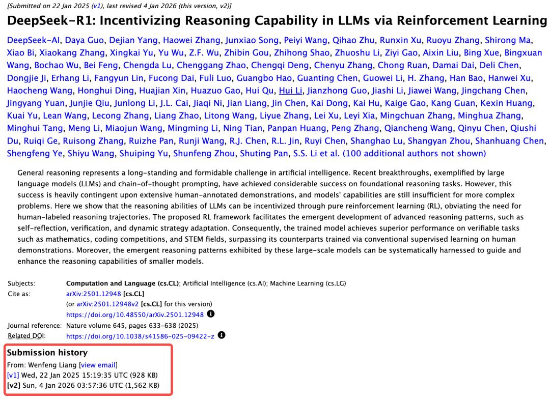 https://www.reddit.com/r/MachineLearning/comments/1q6cb0k/r_deepseekr1s_paper_was_updated_2_days_ago