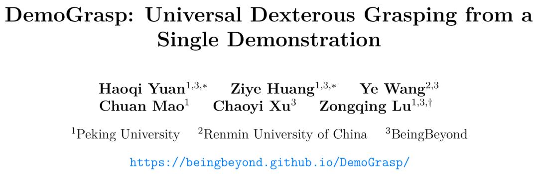 项目主页:https://beingbeyond.github.io/DemoGrasp/
