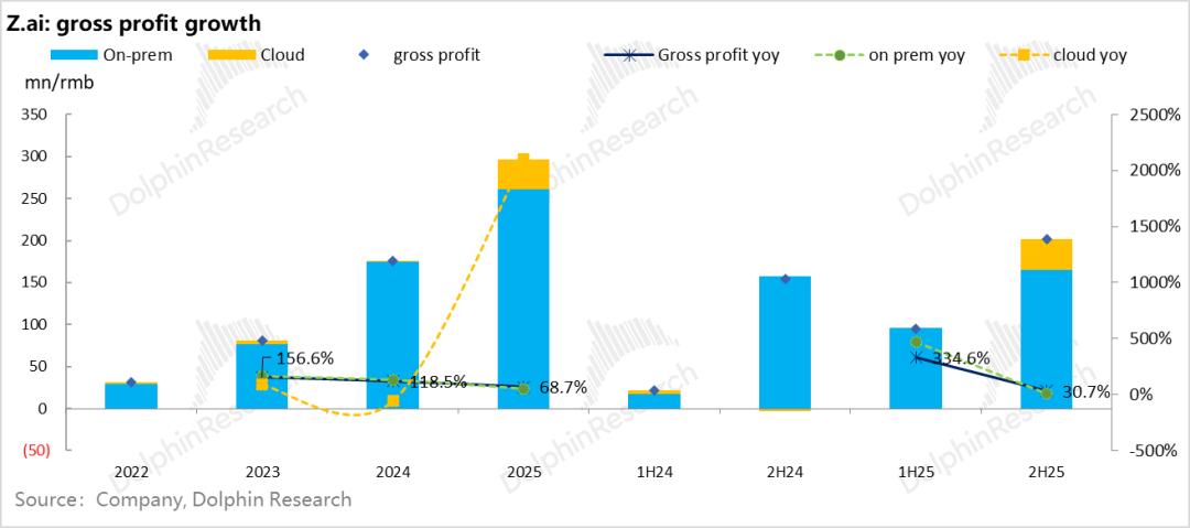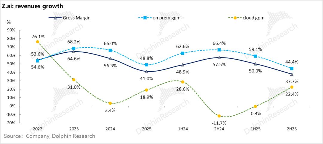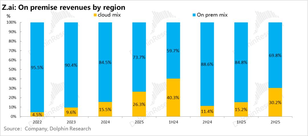 而放缓的主要原因确实应验了资金之前的担忧——收入占比80%+本地部署业务,到了2025年下半年增长已经放缓到了57%,只有3.7亿,占比也滑落到了70%。