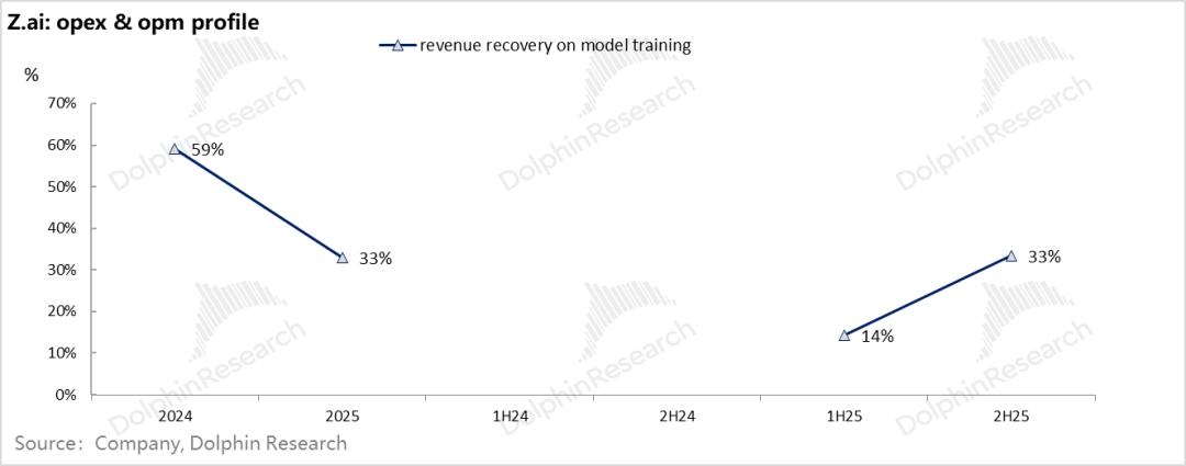 智谱2024年研发支出22亿,25年收入7.2亿,只收回了24年研发支出的33%;25年32亿,26年收入要翻倍到14亿上下,才能看到收入对25年研发投入的回收率提升到45%,与MiniMax基本一致。
