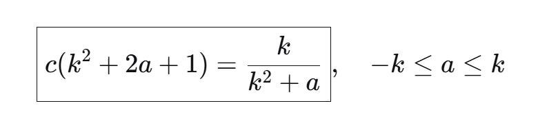 结合Praton的嵌入论证,这恰好给出:c(k2+2a+1)≤k/(k2+a)。