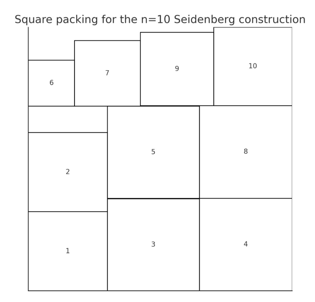 下图展示了从AlphaEvolve给出的一个序列构造出的正方形填充。
