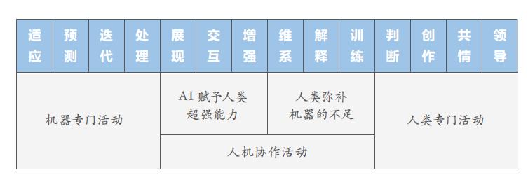 图1 人类和机器在组织中的分工(资料来源:[ 美] 多尔蒂,[ 美] 威尔逊.机器与人:埃森哲论新人工智能[M].赵亚男,译.北京:中信出版社,2018)