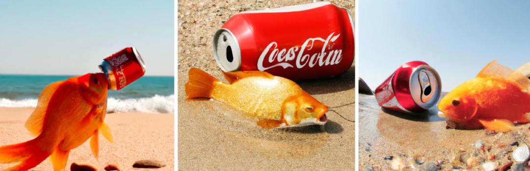 DALL·E 2制作了这些「金鱼在海滩上啜饮可口可乐」的图像。这个由 OpenAI创建的程序可能从未遇到过类似的图像,但它仍然可以自行生成这样的图像。