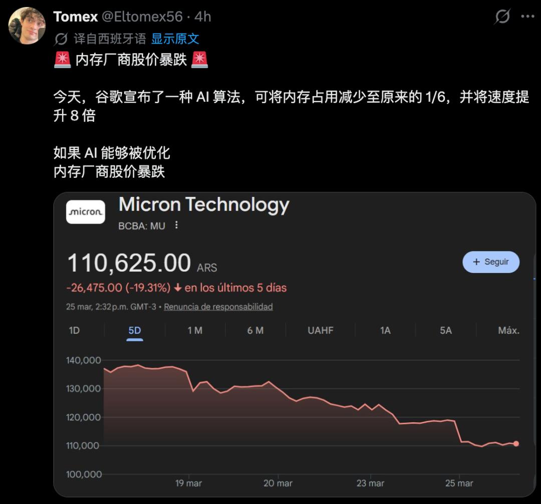 引发这场抛售地震的导火索,正是谷歌发布的TurboQuant压缩算法。