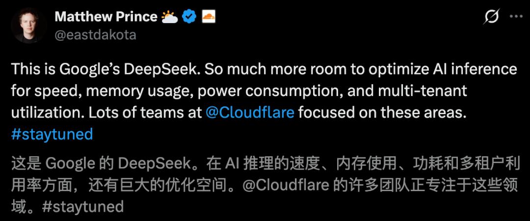 Cloudflare首席执行官Matthew Prince甚至将其形容为「谷歌的DeepSeek时刻」!
