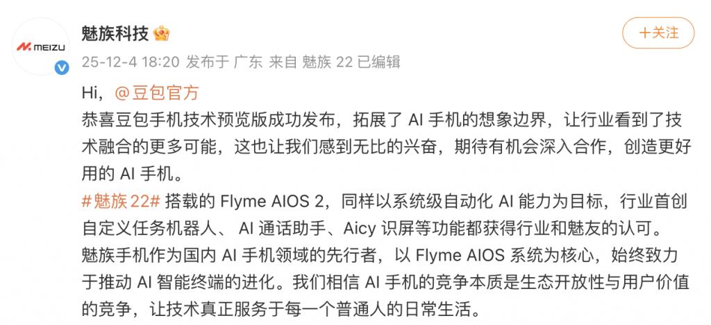 头部厂商有自己的算盘,豆包只能选择和努比亚合作,定位相似的魅族也第一时间抛出橄榄枝,因为合作对他们来说收益更高。