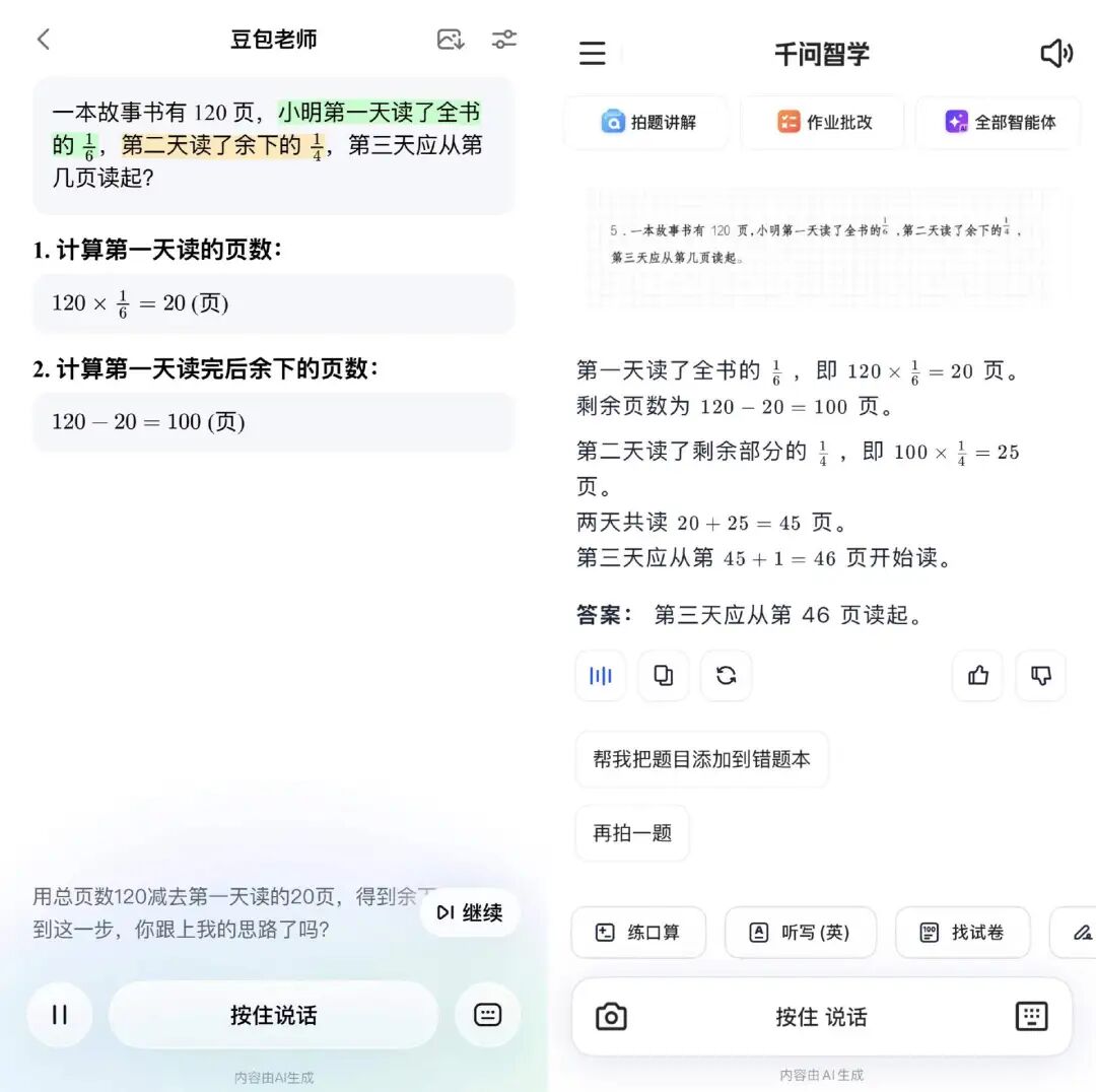 图源 / 豆包爱学(左)、千问智学(右)