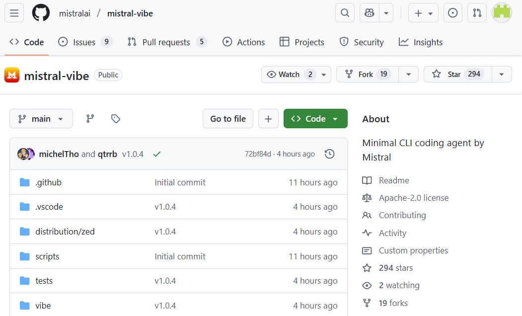 - Mistral Vibe CLI: 一款原生、开源的终端智能体,可自主解决软件工程任务。