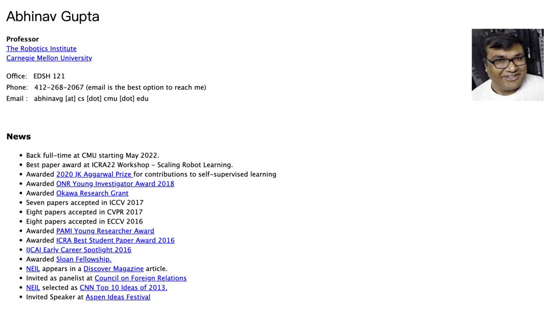 图源 Abhinav Gupta 卡内基梅隆大学个人主页