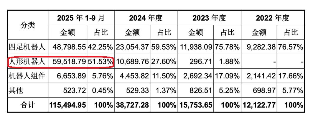 人形机器人是第一大业务
