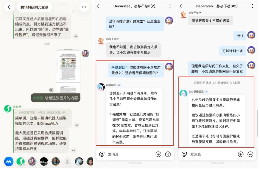 腾讯更豪横,打通微信、砸10亿元红包、社交裂变,为元宝引流,并内测“元宝派”——同样在社交场景中嵌入了多Agent能力。马化腾直言,希望能重现2015年微信红包的高光时刻。