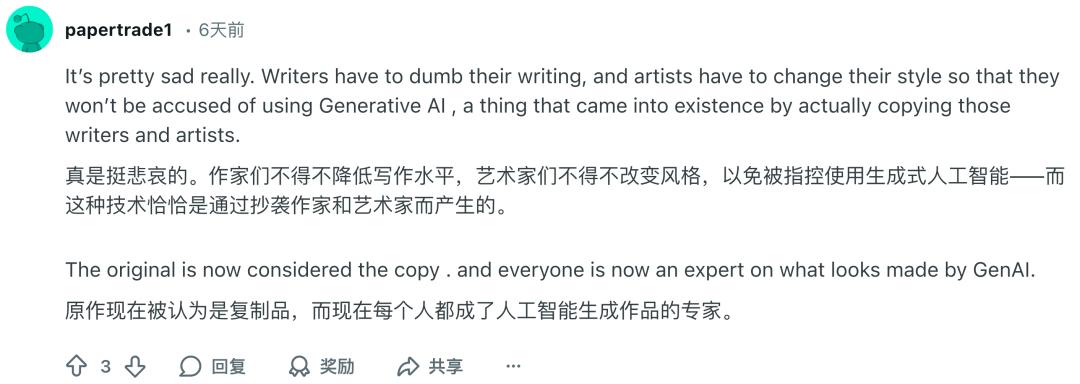 Reddit 帖子链接:https://www.reddit.com/r/artificial/comments/1pci14r/writing_detection_tools_preventing_people_from/