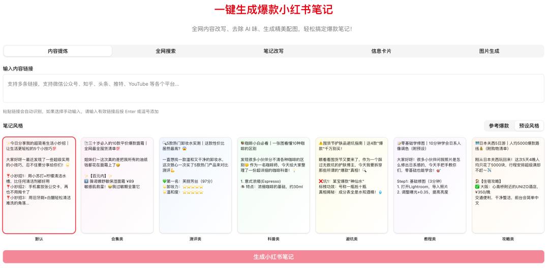 大量能直接生成,爆款小红书笔记的 AI 工具