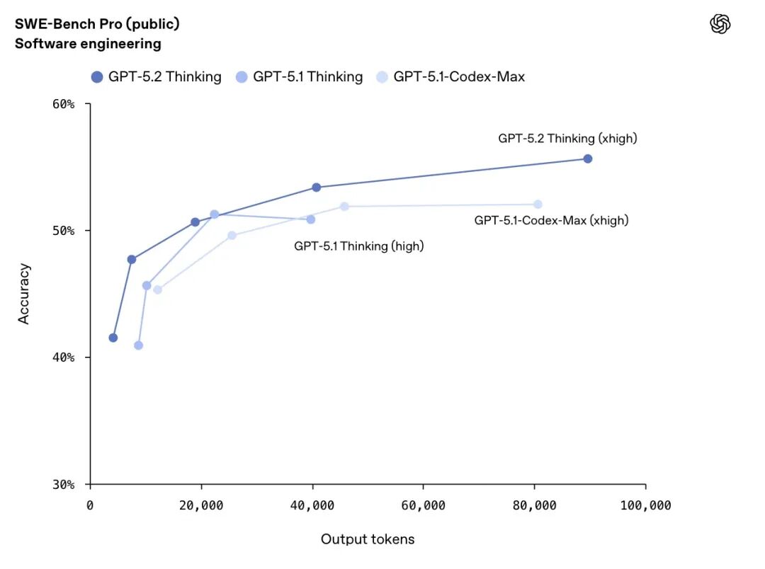 尽管Pro等高端版本的单次token单价更高,但OpenAI强调,GPT-5.2系列在真实智能体任务中具备更高的token使用效率,因此在部分企业场景中,完成同等质量任务的整体成本反而可能降低。官方同时说明,Pro版本在实际使用中能显著减少“推理废话”,输出内容更紧凑精炼,这一特性也将进一步帮助用户控制使用费用。
