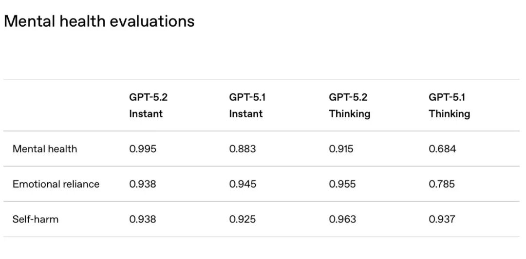 在安全策略方面,GPT-5.2 延续“safe completion”训练框架,重点强化心理健康、风险倾向、敏感身份类对话场景的表现。OpenAI还正式宣布开始部署年龄预测系统,可在疑似未成年用户使用模型时自动切换到受限模式与额外安全过滤。