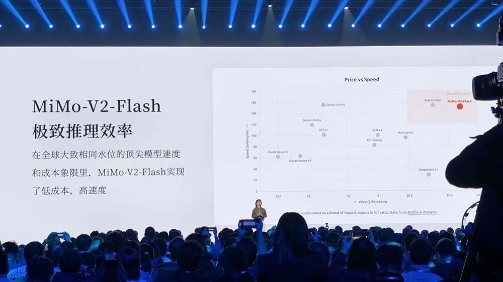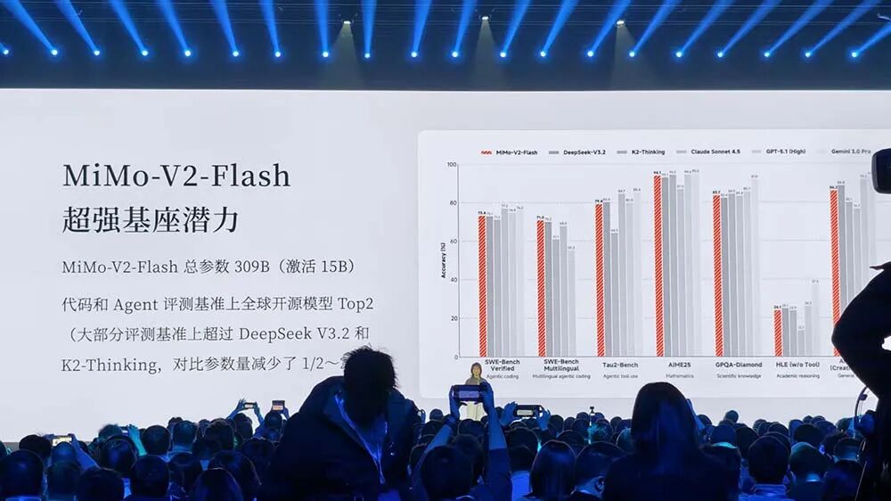 小米创始人兼CEO雷军此次并未来到现场,小米集团合伙人、集团总裁卢伟冰率先登台演讲,今天第三位演讲的是当前备受关注的原DeepSeek核心成员、被业内称为“天才少女”的罗福莉,她现在的职位是小米MiMo大模型负责人。