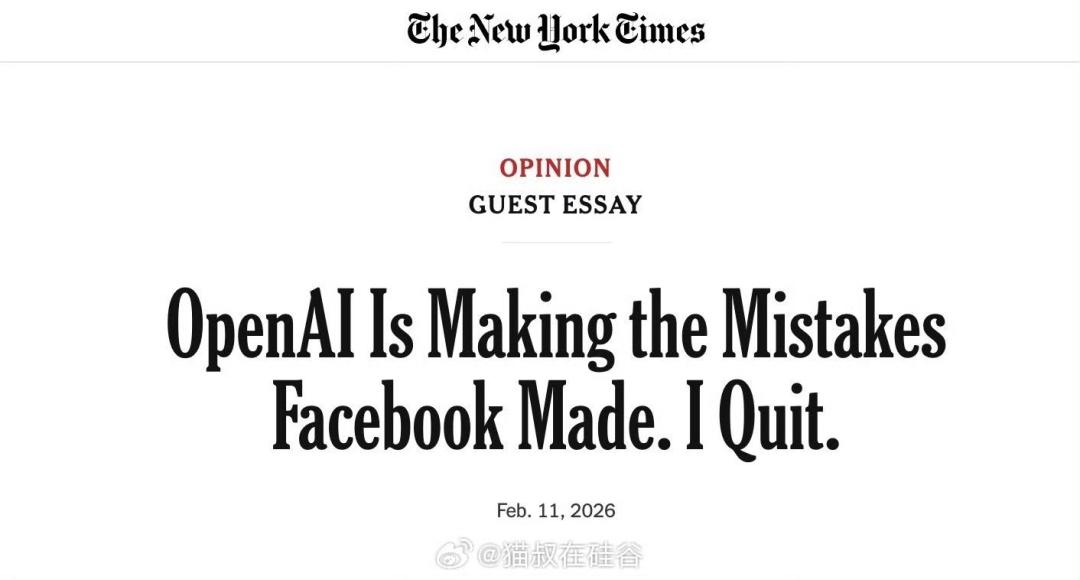 就在OpenAI宣布广告计划的同一天,该公司的明星研究员佐伊·希特齐格(Zoë Hitzig)选择了辞职。这位哈佛经济学博士和诗人本周在《纽约时报》发表评论文章,详细阐述了她对公司发展方向的深切担忧。