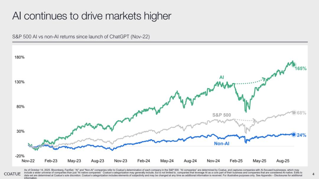 •AI 板块推动市场,AI 与非 AI 资产回报分化显著