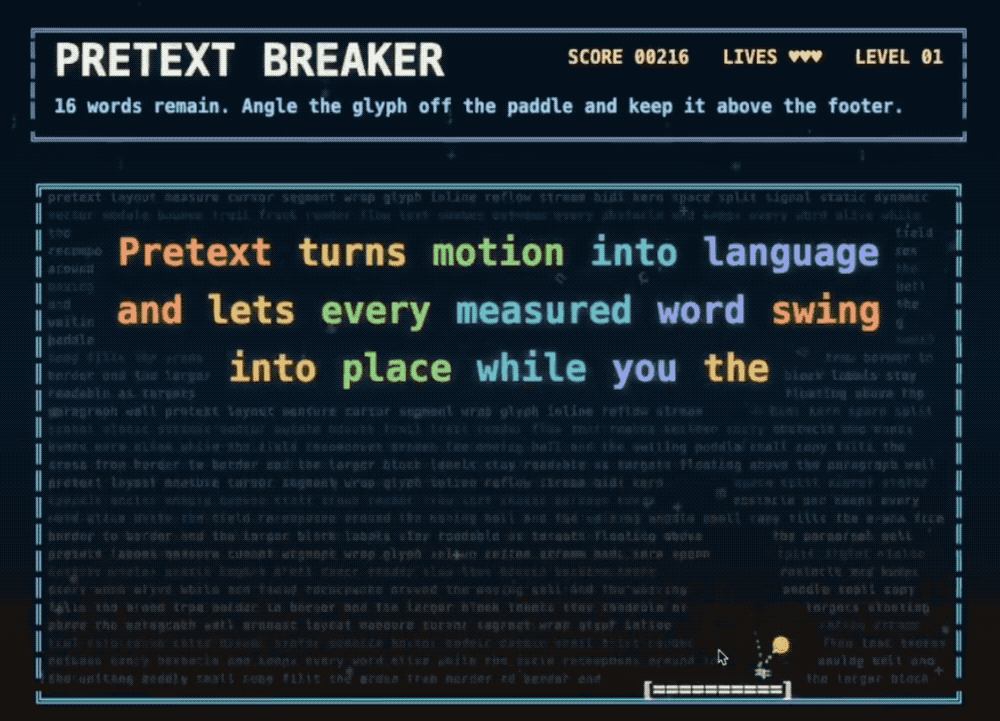 还有开发者用Pretext做游戏。