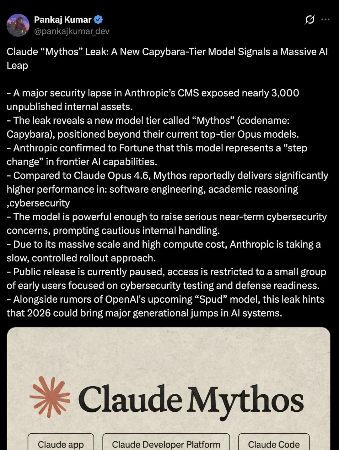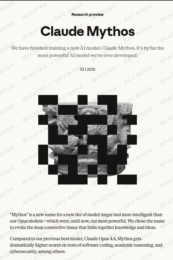 就在刚刚,Anthropic疑似下一代旗舰重磅旗舰模型Mythos的基准测试跑分,又又又泄露了。
