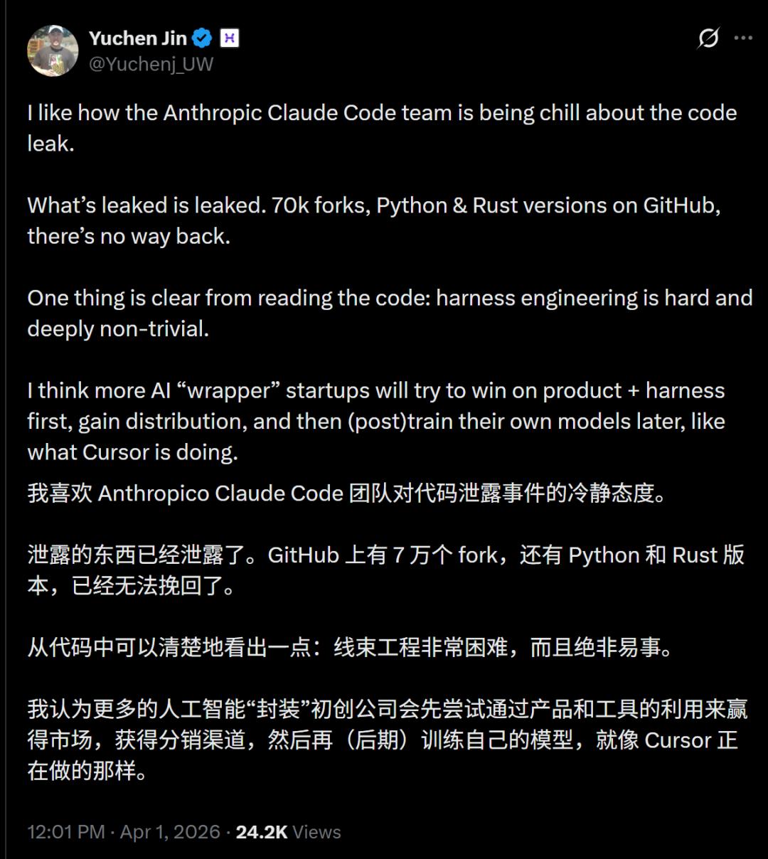 因此,CC这次源码泄露,实际上是将一个原本专有的「工业级工具箱」抛向了荒野,这就降低了所有人构建完善编码智能体的门槛。