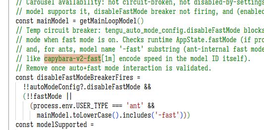 不同于大家猜测的Mythos(目前尚无实据),代码中明确指向了名为capybara-v2-fast的新模型。