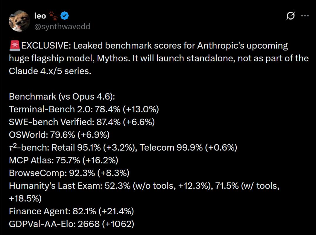 如果这些数字属实,那Mythos显然又是一个巨大的升级。不仅在性能上,而且在定位上。