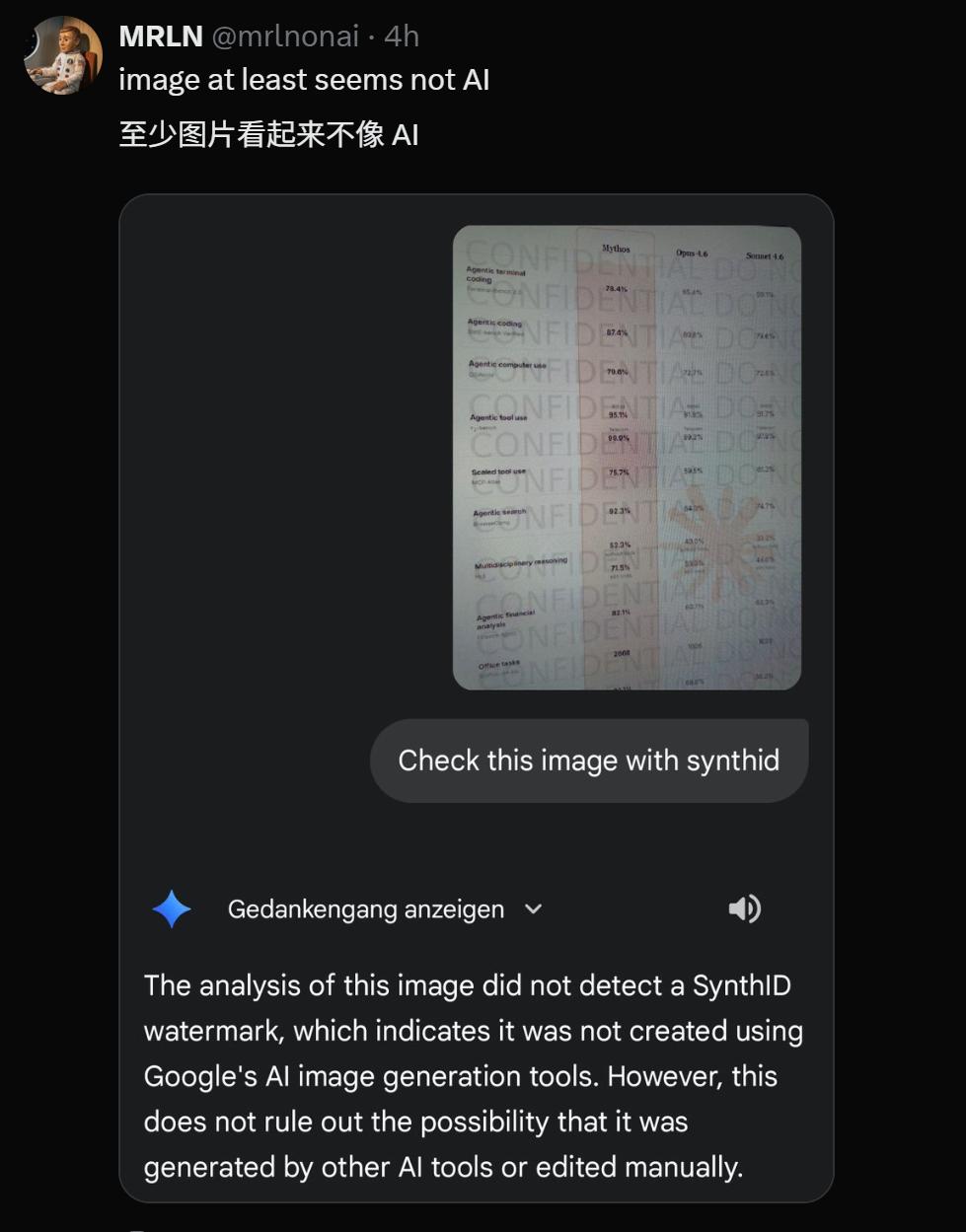 有人特意用谷歌的AI内容水印技术synthid验了一下这张图,大概率不是AI生成的。