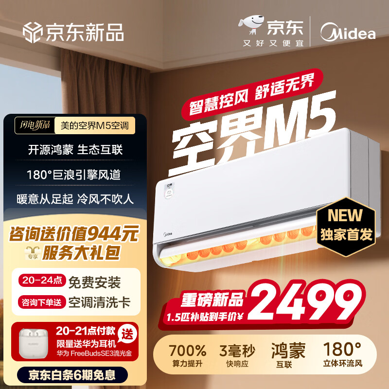 京东美的空调 空界 M5 大 1.5 匹 2949 元,国补后到手价 2499 元直达链接广告声明:文内含有的对外跳转链接(包括不限于超链接、二维码、口令等形式),用于传递更多信息,节省甄选时间,结果仅供参考,IT之家所有文章均包含本声明。